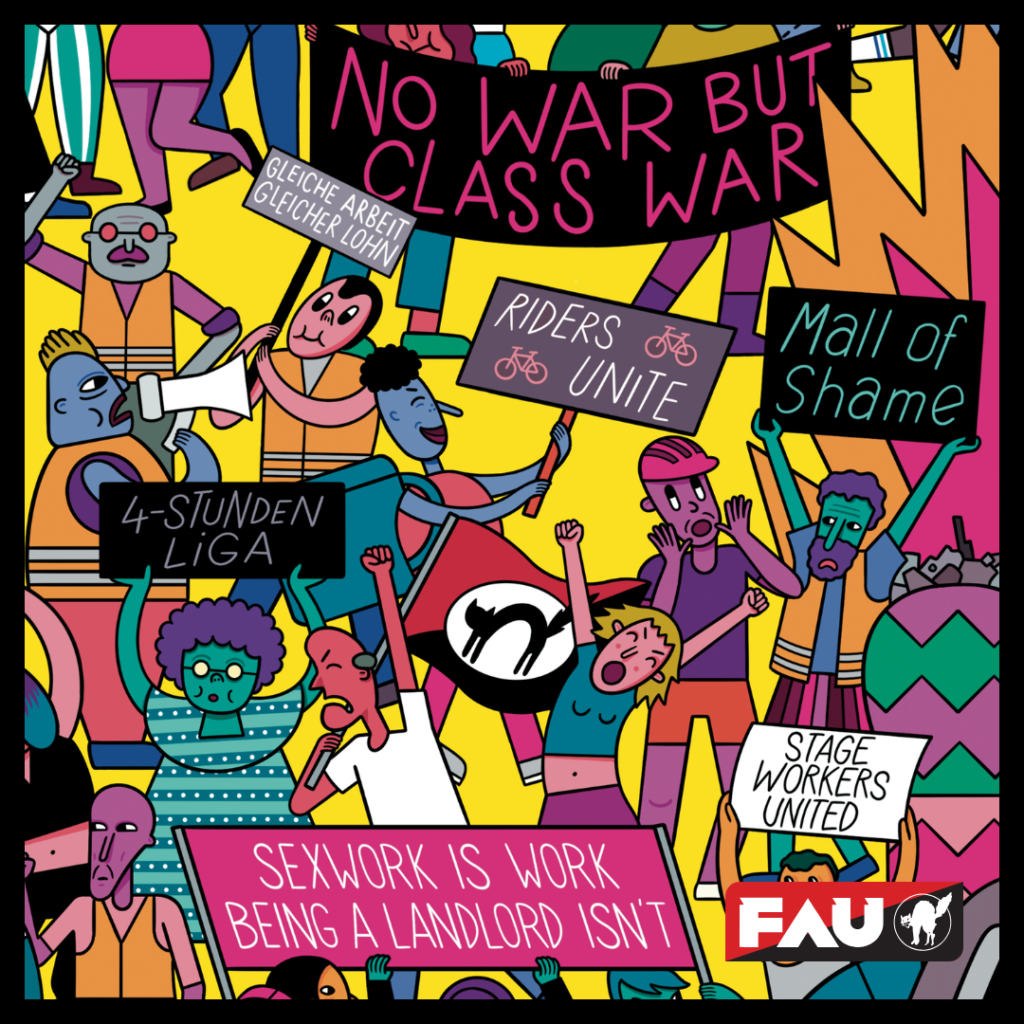 In Zeiten, in denen eine massive Aufrüstung stattfindet und in denen diffuse Forderungen nach Mehrarbeit durch die Medien und die Parlamente geistern, sind Solidarität und kämpferische Haltung wichtiger denn je. Helfen kann hier nur ein Klassenkampf von unten, der über nationale Grenzen hinausgeht. Durch unsere Arbeitskraft, die den Kapitalismus am Laufen hält, verfügen wir über effektive gesellschaftliche Druckmittel: Organisation und Streik! Am Arbeitsplatz, im Sozialleistungsbezug, in unseren Wohnhäusern, im Haushalt, an Schulen und Universitäten, auf der Straße und in allen Lebensbereichen können wir uns gegenseitig ermächtigen und unsere Interessen durchsetzen.